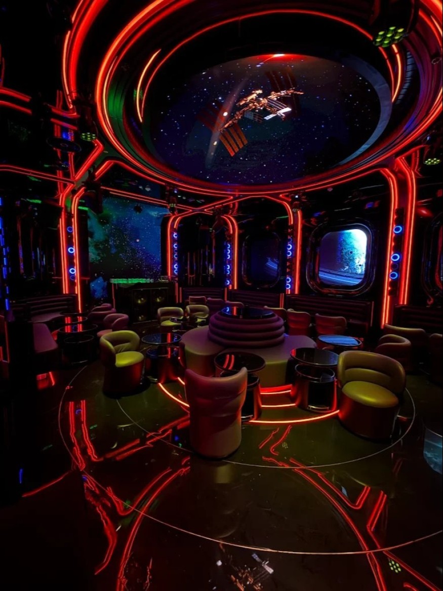 Интерьер ресторана оформлен в стиле ИИ.