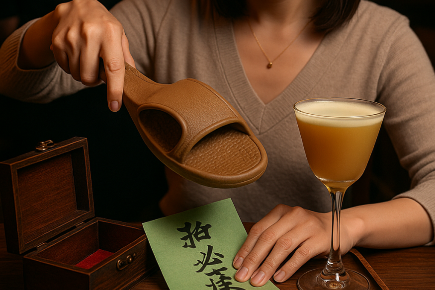 Суть ритуала такова: после заказа официант приносит деревянную шкатулку, в которой находятся коктейль и тапочек. «Пожалуйста, помогите мне побить тех, кто мне не нравится, особенно моего проблемного начальника», —......