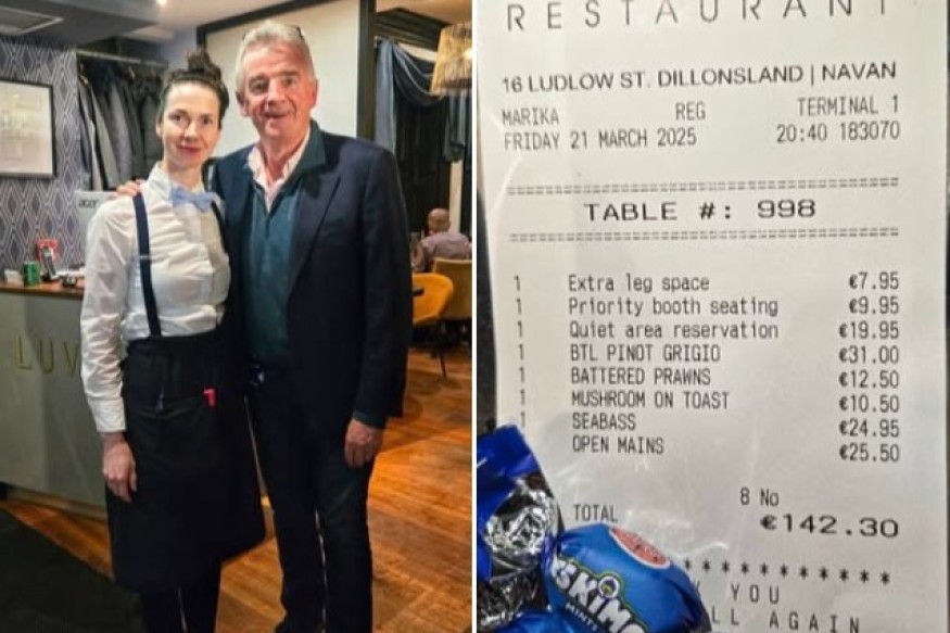 Посетив ресторан Luvida в ирландской деревушке Наван, О’Лири заказал вполне скромный ужин: сибас, тост с грибами, креветки в кляре и бутылочку пино гриджо — потому что кто мы такие без пино гриджо? Всё шло как по маслу, пока не принесли счёт.