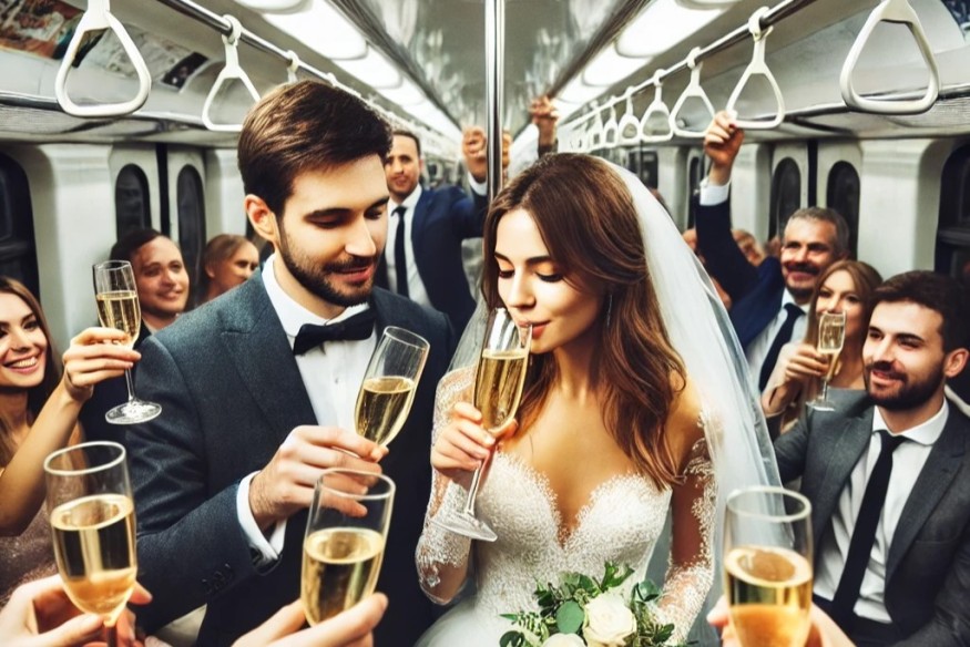 39-летний Дэниел Джин и его возлюбленная, 38-летняя Эсми Вальдес, официально заключили священный брак во время частной церковной церемонии в четверг, 27 июня. Однако праздничные бокалы они подняли во вторник в вагоне метро вместе с 20 друзьями и кучей незнакомых людей. Такая вечеринка обошлась им всего в 3000 долларов.