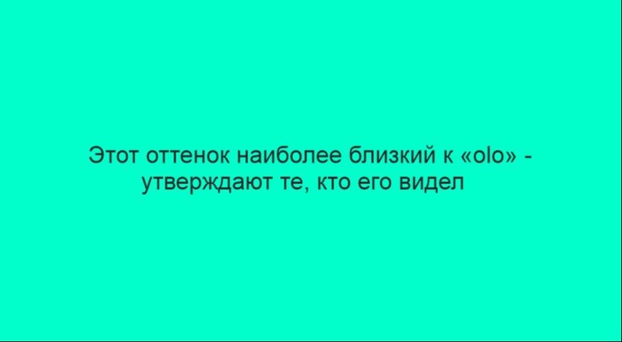 Учёные опубликовали изображение ярко-бирюзового квадрата, чтобы хотя бы отчасти визуализировать цвет, однако уточнили: настоящий olo невозможно передать ни на экране, ни в печати.