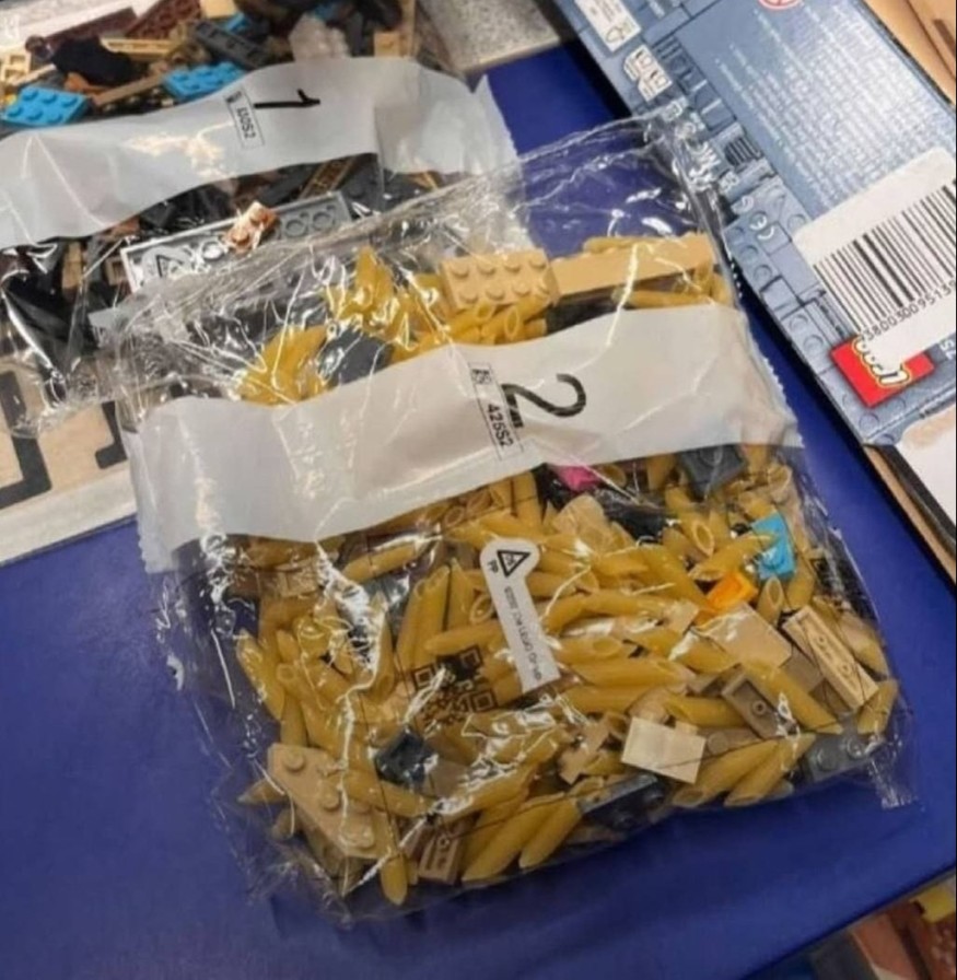 Дома он вскрывал коробки, забирал оригинальные детали и минифигурки, а вместо них вкладывал обычные макароны. После этого товар возвращался в магазин как «неподошедший», и мужчина получал деньги обратно.