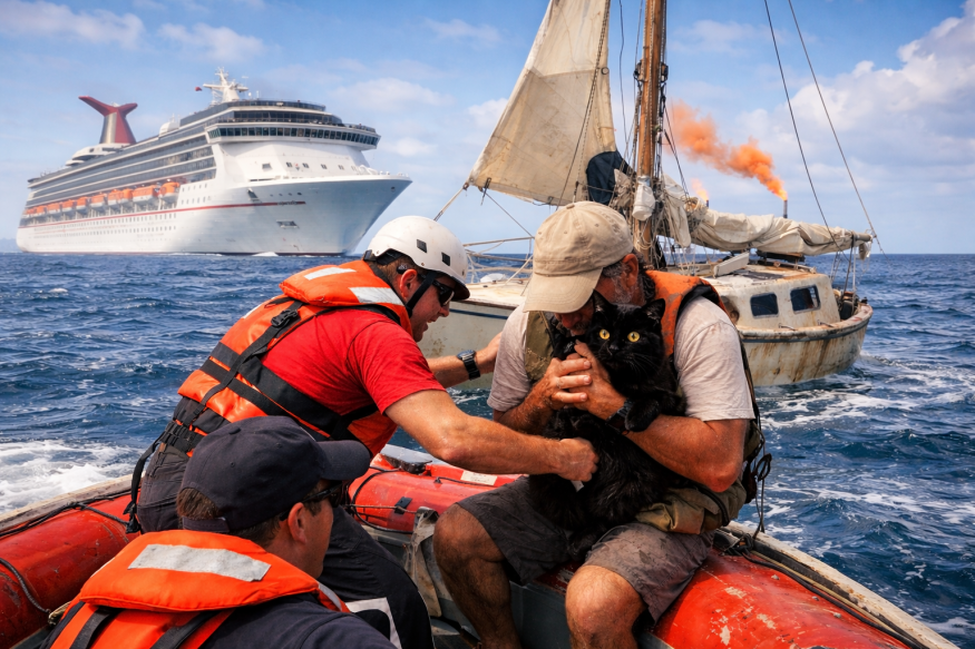 Экипаж круизного лайнера Carnival Legend пришёл на помощь мужчине и его кошке, оказавшимся в открытом море на неисправной парусной лодке. Об этом сообщает Fox News со ссылкой на оператора судна.