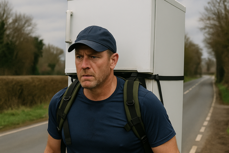 Мужчина прошёл 112 км с холодильником на спине в память о жене