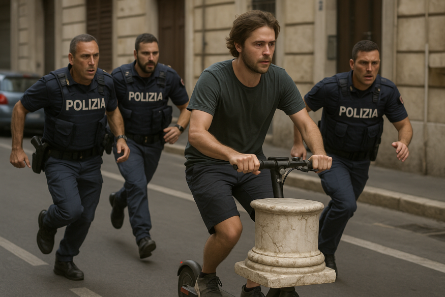 Итальянская полиция преследовала немецкого туриста после того, как заметила, что он перевозит древнеримский артефакт на арендованном электросамокате. Об этом сообщает CNN со ссылкой на местные правоохранительные органы.24-летний турист перевозил мраморное основание древней колонны весом 30 килограммов. Эксперты назвали артефакт «представляющим исторический интерес». Место, откуда была похищена колонна, пока не установлено.