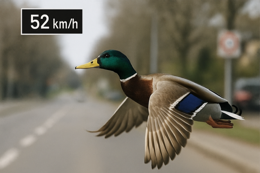 Снимок с "уткой-нарушительницей" опубликовали местные власти. Птица летела со скоростью 52 км/ч в зоне, где допустимая скорость составляет 30 км/ч.