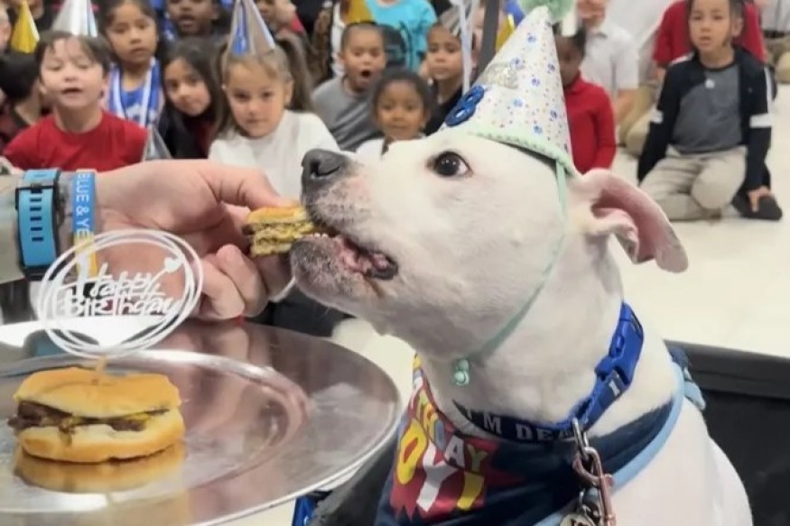 В одной из школ Нью-Джерси, США, отметили день рождения любимого сотрудника — глухого пса по кличке Коул. Вот уже семь лет он работает там собакой-терапевтом. Каждый год ученики устраивают грандиозные вечеринки в честь именинника, чтобы показать, как сильно они его ценят.В этом году Коул в праздничном наряде прокатился по школе в специальной карете, сообщает The Dodo. Ученики доставили пса в кафетерий, где и начался праздник.