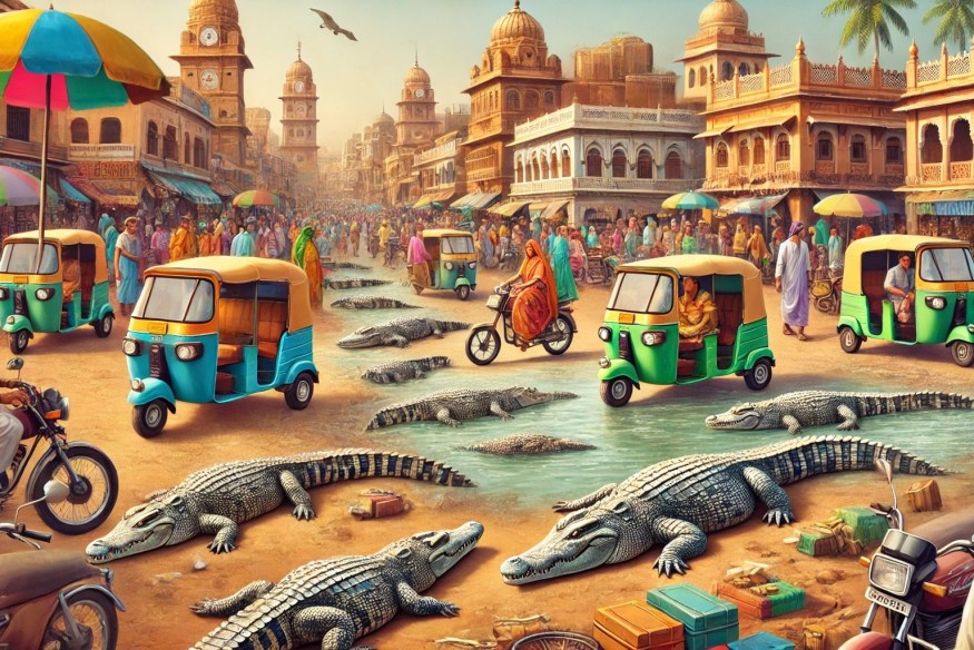 Небывалые ливни в самом западном индийском штате Гуджарат привели к серьезному наводнению. В результате в разных районах города Вадодара стали замечать незваных гостей — местные улицы буквально кишат крокодилами.