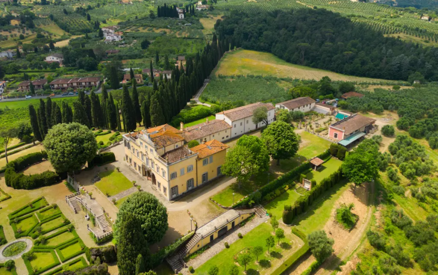 Вилла состоит из четырех этажей и занимает площадь около 43 000 квадратных футов. В доме есть два входа, прихожая, пять гостиных, столовая, библиотека и фитнес-зал. Всего в резиденции 14 спален и 15 ванных комнат. На территории в 66 акров также находятся дом смотрителя, оранжерея, теплица и различные сельскохозяйственные постройки. Среди других особенностей главного дома – помещения для персонала, лифт и терраса на втором этаже с видом на равнину Флоренции. Эта вилла не только является уникальным объектом недвижимости, но и несет в себе богатую историческую и культурную ценность благодаря своему прошлому и сохраненным архитектурным элементам.