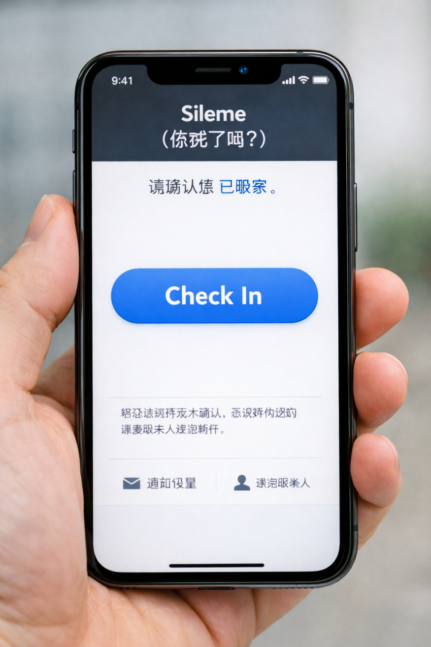 Принцип работы приложения максимально простой: пользователь ежедневно отмечает в интерфейсе, что с ним всё в порядке. Если отметка не сделана в установленный срок, система автоматически отправляет уведомление доверенному контакту. В минувшую субботу Sileme заняло первое место среди платных приложений в китайском App Store.