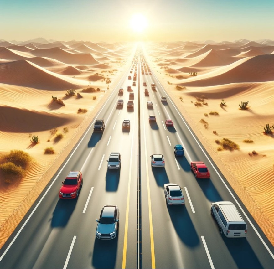 Этот конкретный объект инфраструктуры изначально был построен как частная дорога для короля Фахда, но с тех пор, как она стала частью государственной дорожной системы, она претендует на рекорд Гиннеса как самая длинная прямая дорога в мире, также известная как "самая скучная дорога в мире", из-за полного отсутствия поворотов, почти полностью равнинную местность и однообразное окружение.