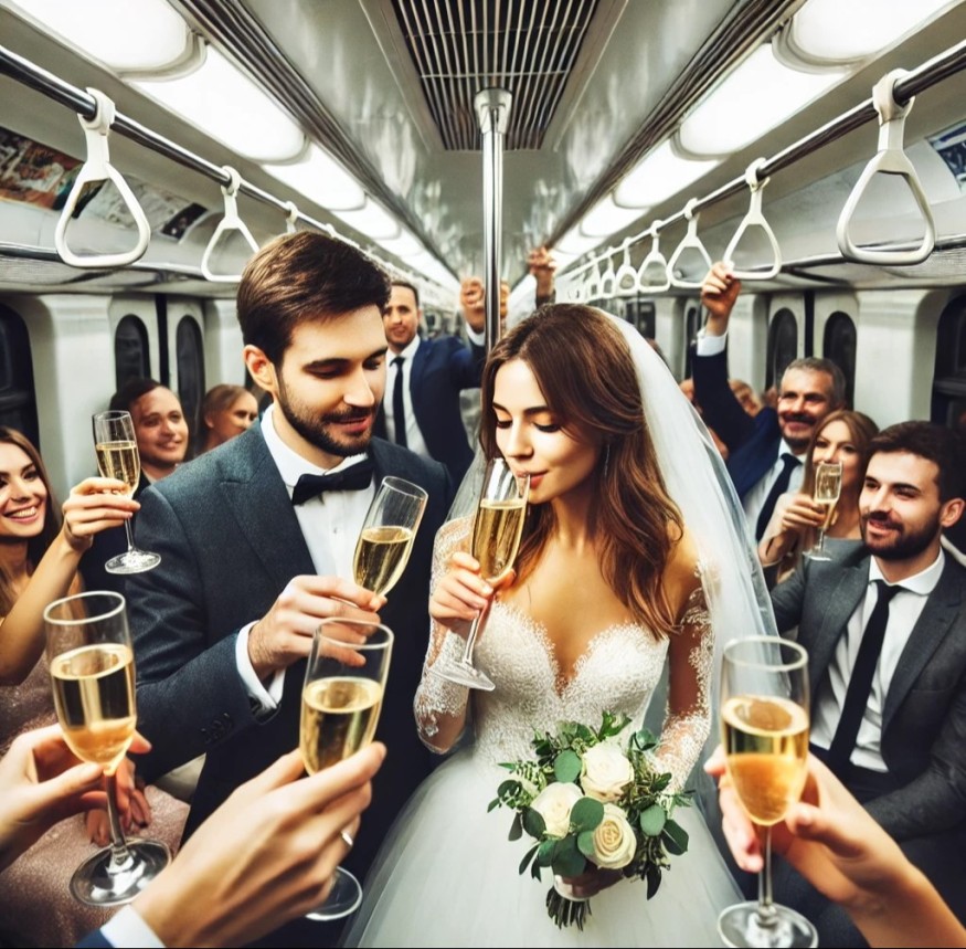 39-летний Дэниел Джин и его возлюбленная, 38-летняя Эсми Вальдес, официально заключили священный брак во время частной церковной церемонии в четверг, 27 июня. Однако праздничные бокалы они подняли во вторник в вагоне метро вместе с 20 друзьями и кучей незнакомых людей. Такая вечеринка обошлась им всего в 3000 долларов.