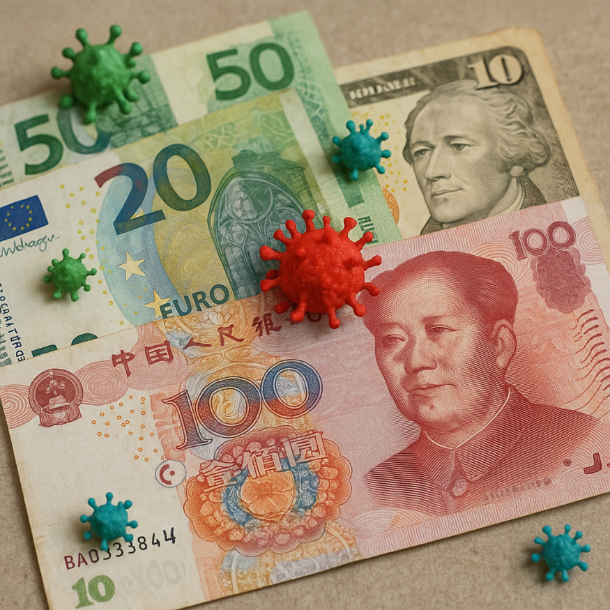 В 2022 году Национальная библиотека медицины США опубликовала исследование группы румынских учёных, которые изучали, как долго сохраняются стафилококк, сальмонелла и другие микроорганизмы на банкнотах разных стран. Они пришли к выводу, что бактериальные штаммы дольше всего сохраняются на купюрах с хлопковой основой, таких как доллары и евро, и хуже — на полимерных банкнотах, например, британских и румынских.