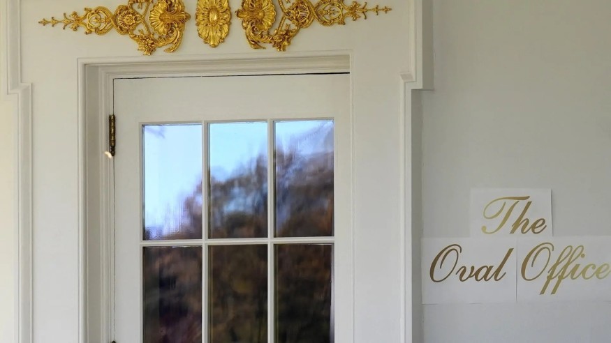 На этой неделе журналисты заметили у входа в Овальный кабинет новое украшение — сверкающую золотом надпись “The Oval Office”, выполненную каллиграфическим шрифтом. На первый взгляд — просто декоративная деталь. Но всё это произошло на фоне самого продолжительного шатдауна в истории США, когда миллионы американцев не получают социальных выплат.